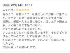 本当の第一印象は…きっと登場の仕方かな?笑恥ずかしいっ!笑でも こんなに素敵なクチコミを書いてもらえた事本当に嬉しく思いますまた一つ励みが出来ました幸せな時間を過ごさせてもらえた上に素敵なクチコミまで!miria